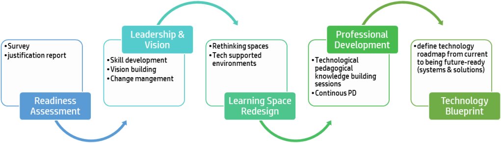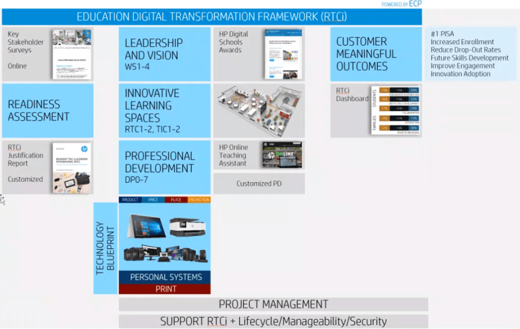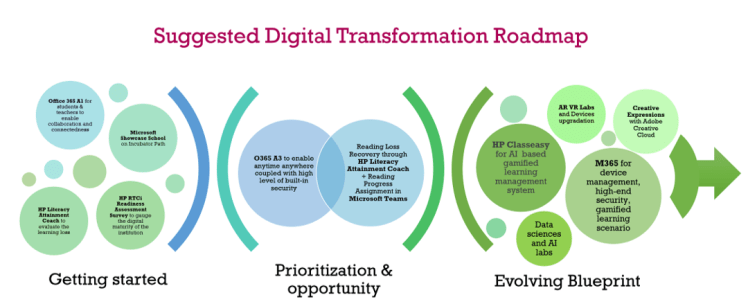 Our Digital Transformation Roadmap is an effective, flexible platform for education transformation grounded by research by Microsoftโs Education transformation Framework and HPโs Reinvent The Classroom International (RTCi, supported by Intel). Deep and sustainable transformation happens only with the support from every level โ schools. local authorities and national governments.
